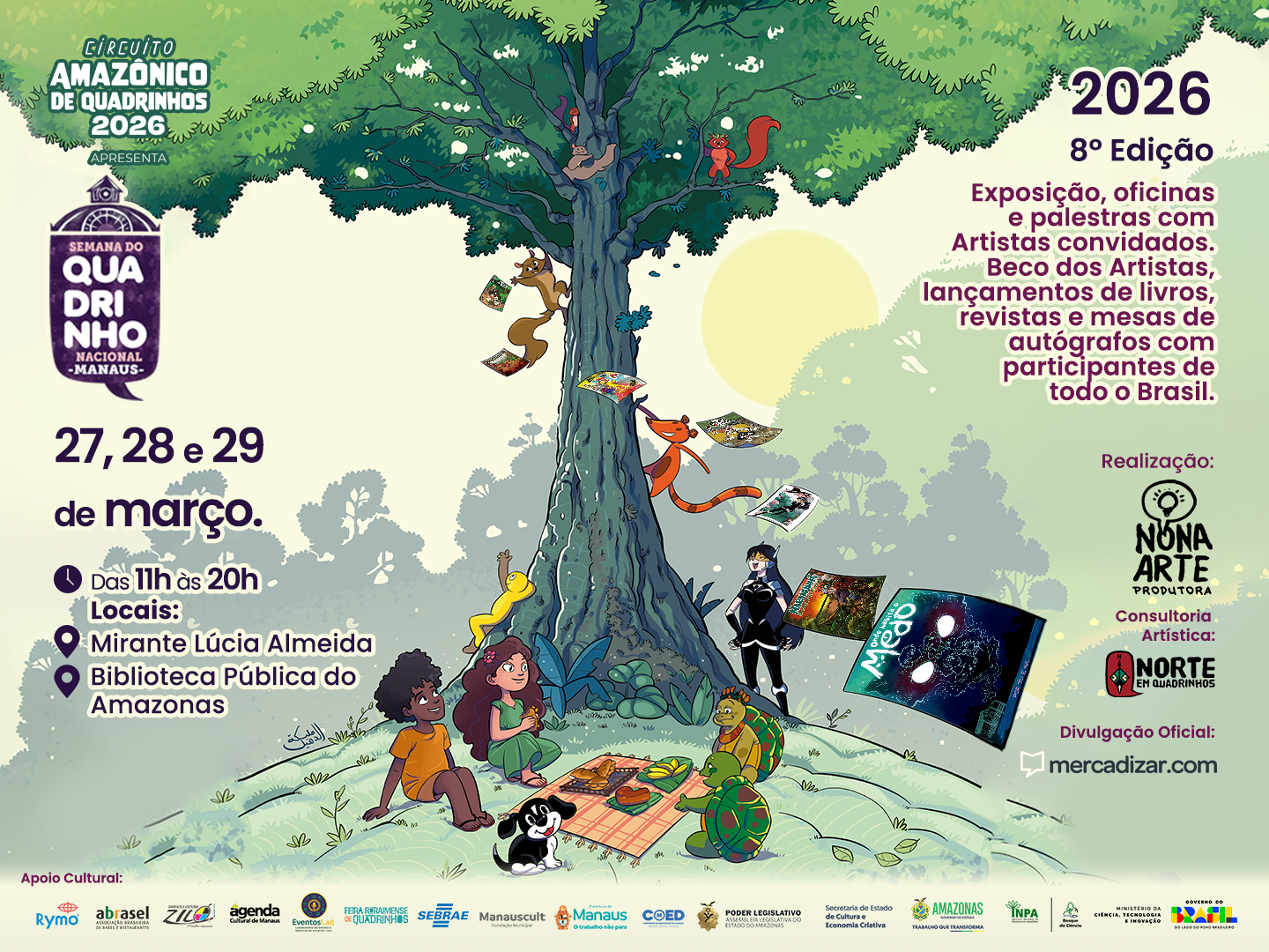 A 5ª Semana do Quadrinho Nacional Manaus ocorreu na Biblioteca Pública do Amazonas, celebrando o Dia do Quadrinho Nacional. Destaques incluíram o lançamento da HQ “Death Hunt” de Stan Lee e o Artists’ Alley com artistas de vários estados. O evento teve palestras, um concurso e entrada franca.